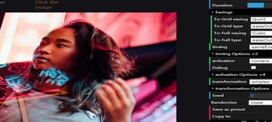 这是一款基于HTML5 WebGL实现图像扭曲变形动画特效。该特效中,通过Three.js来制作从一幅缩略图,扭曲变形为全屏大图的动画特效,共有6种炫酷的动画效果。