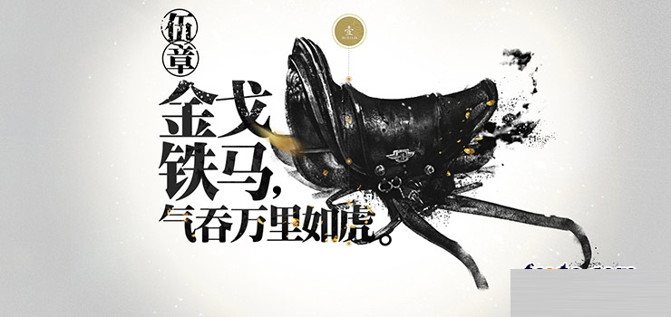 《刀锋铁骑》作为一款冷兵器战争网游,囊括了历史上众多的战役战争,多少王侯将相置身其中。闭眼冥想那漫天飞沙走石,黑色狼烟滚滚中的金戈铁马是多么的豪美壮阔。联想到的黑金两色更能体现这视觉画面。黑色的粉尘颗粒来自战场,金色的文字碎片象征这将使,简单两色给《刀锋铁骑》带来的最纯粹的视觉。