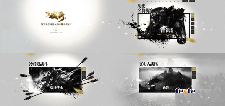 在设计初期,参考以往的经典案例,从《刀锋铁骑》本身产品特性出发进行设计。在众多的古代类游戏中,再好的设计也会被之后的新品模仿超越,只有独辟蹊径以新的视觉元素才能为产品首发带来最好的效果。