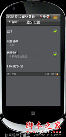 6.同样如果是搜索手机搜索不到,同样需要在你手机里做相应的设置。我们以安卓手机联想乐Phone为例,在无线和网络设置里,先打开蓝牙,然后在蓝牙设置里面,有一项可检测性,可以看到下面有个说明:可以检测到设备。此项需要打上对勾。如下图所示: